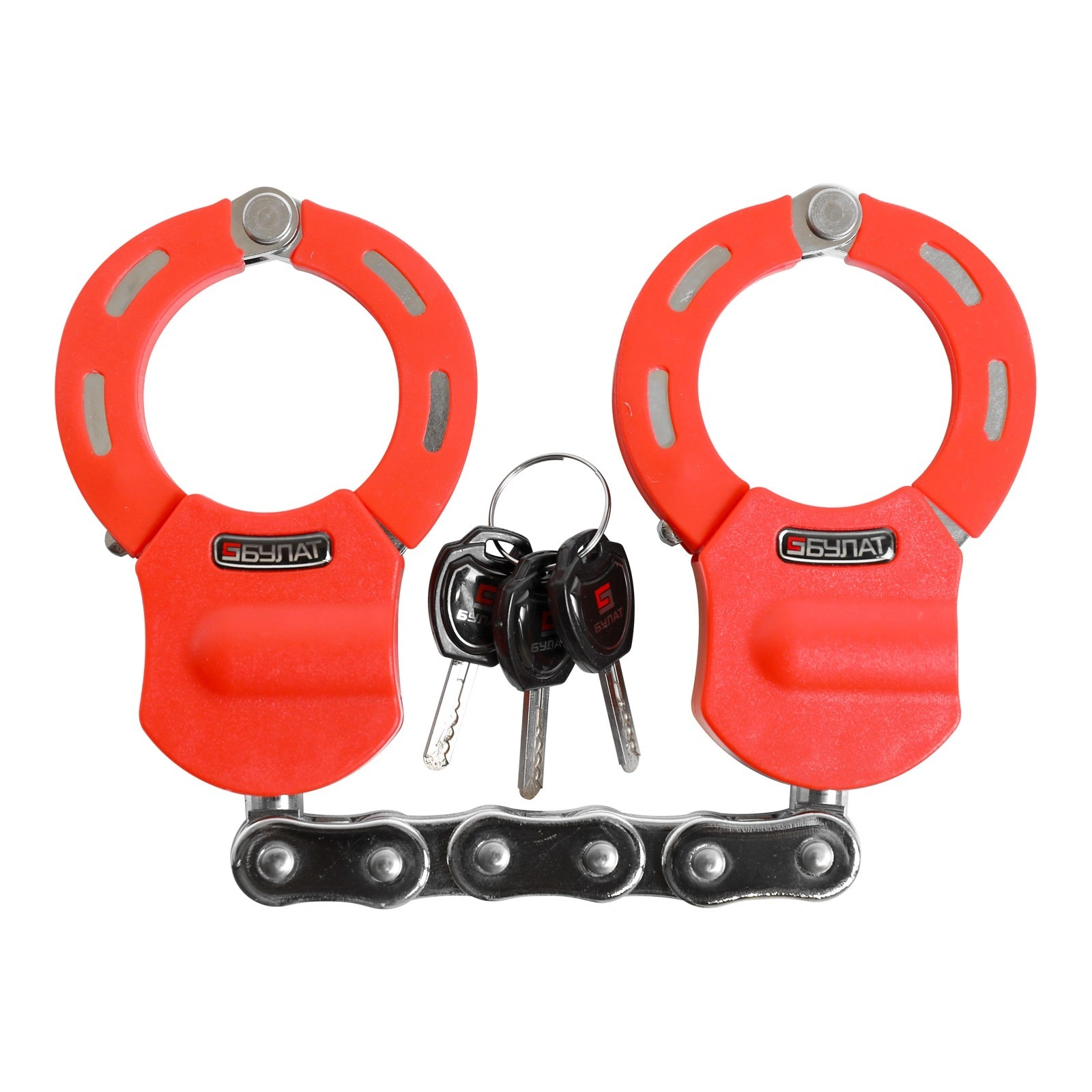 - Цепь- закаленная легированная сталь - Размер звена цепи 20х15 мм длина цепи 405 мм - Внутренний диаметр наручника - 56 мм Сертифицирован в РФ. Гарантийный срок 5 лет.