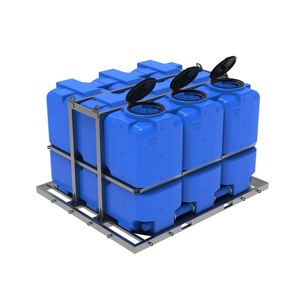 безопасная транспортировка: прочная обрешетка надежно фиксирует емкости, предотвращая их смещение в любом направлении, а низкий центр тяжести всей кассеты обеспечивает повышенную устойчивость транспортного средства в пути;