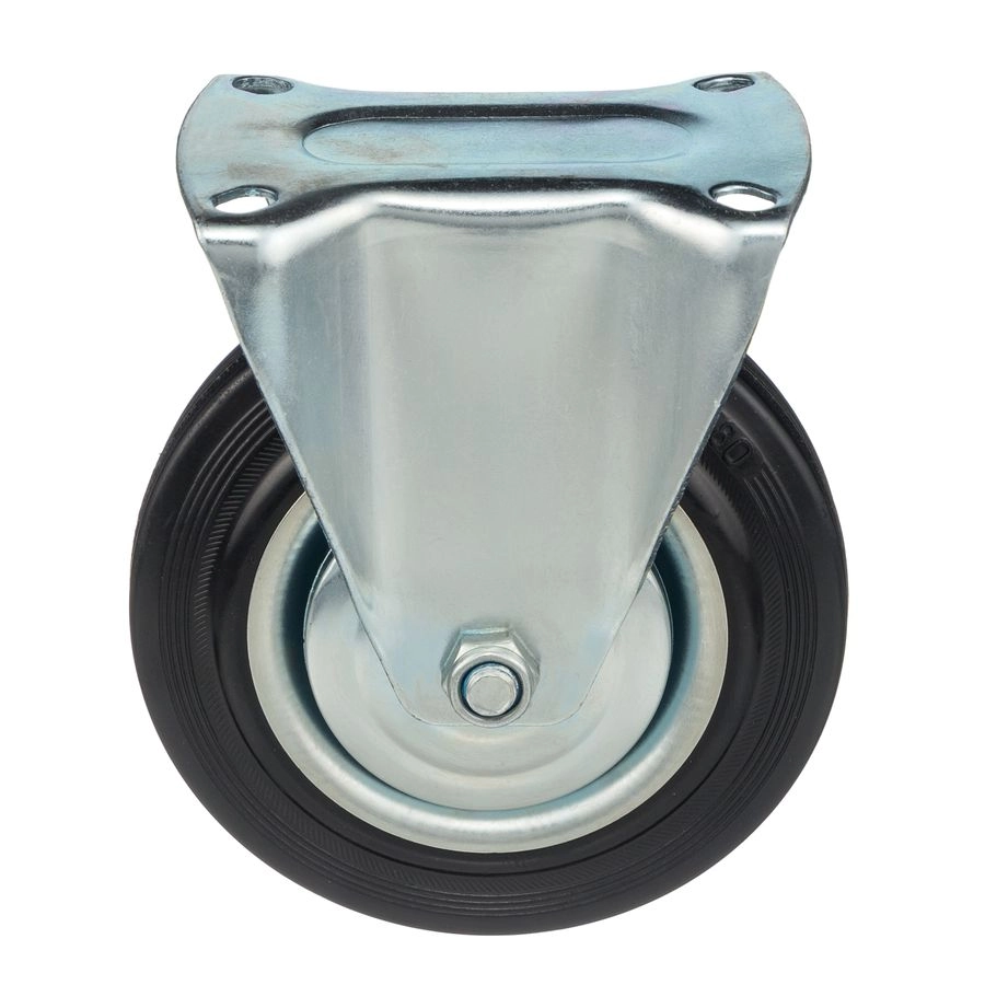 Колесо неповоротное 4002-160, диаметр 160мм., грузоподъемность 145кг. Колеса из черной литой резины, центр из двух гальванизированных дисков из штампованной стали. Роликовый (игольчатый) подшипник расположен в углублении, выдавленном под прессом, и содержит цилиндрические ролики подшипника. Неповоротный кронштейн изготовлен прессованием из листовой стали. Возможно применение на относительно грубых полах складов, заводов, производственных и строительных площадках. Данные колеса можно использовать на неровных поверхностях, во влажной окружающей среде и использовании вне помещения, не рекомендуется применять в среде с органическими растворителями, хлорированными веществами, гидрокарбонатами и минеральными маслами. Температура эксплуатации от -20 до +70С.