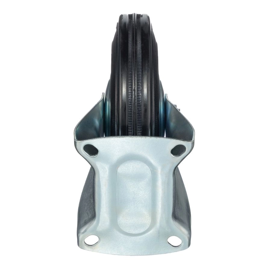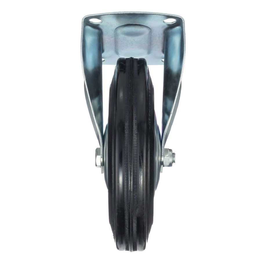 Колесо неповоротное 4002-200, диаметр 200мм., грузоподъемность 185кг. Колеса из черной литой резины, центр из двух гальванизированных дисков из штампованной стали. Роликовый (игольчатый) подшипник расположен в углублении, выдавленном под прессом, и содержит цилиндрические ролики подшипника. Неповоротный кронштейн изготовлен прессованием из листовой стали. Возможно применение на относительно грубых полах складов, заводов, производственных и строительных площадках. Данные колеса можно использовать на неровных поверхностях, во влажной окружающей среде и использовании вне помещения, не рекомендуется применять в среде с органическими растворителями, хлорированными веществами, гидрокарбонатами и минеральными маслами. Температура эксплуатации от -20 до +70С.