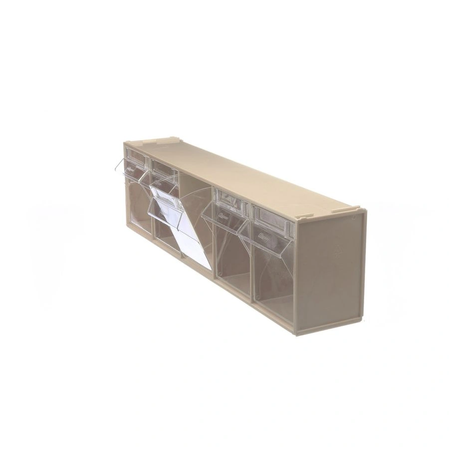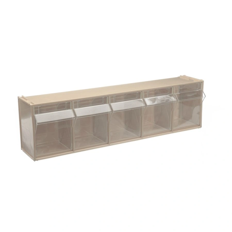 Короб откидной F-600-5-B, 600х140х168 мм 5 ячеек, бежевый / прозрачный, служит для хранения мелкоштучных предметов. Данная система хранения не подвержена случайному опрокидыванию. Откидные ячейки обеспечивают быстрый доступ к необходимым предметам. В случае необходимости полного высыпания или наполнения короб легко извлекается. Полезный внутренний размер каждой ячейки 108х98х107мм.