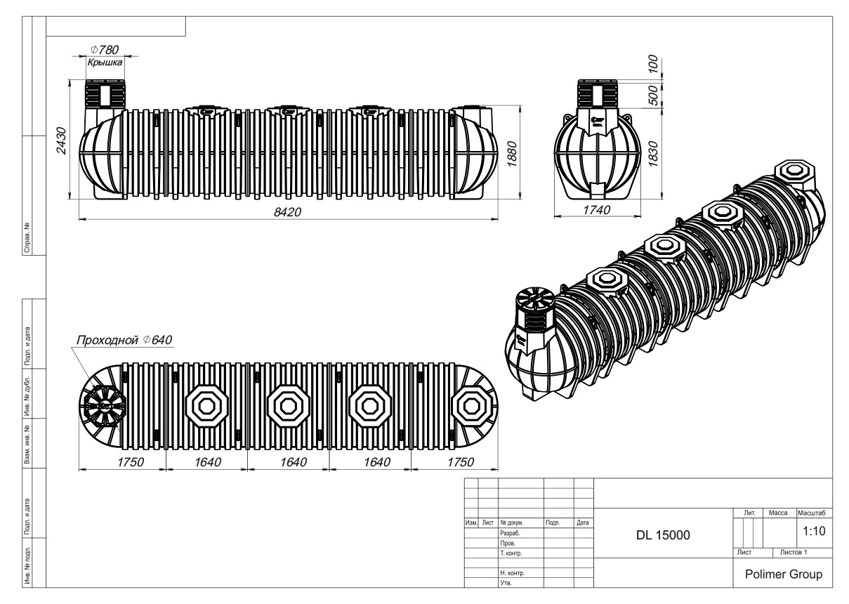 Подземный резервуар объёмом 15000 литров предназначен для безопасного хранения питьевой и технической воды, дизельного топлива, а также химически агрессивных жидкостей. Также может применяться при устройстве локальных канализационных систем.