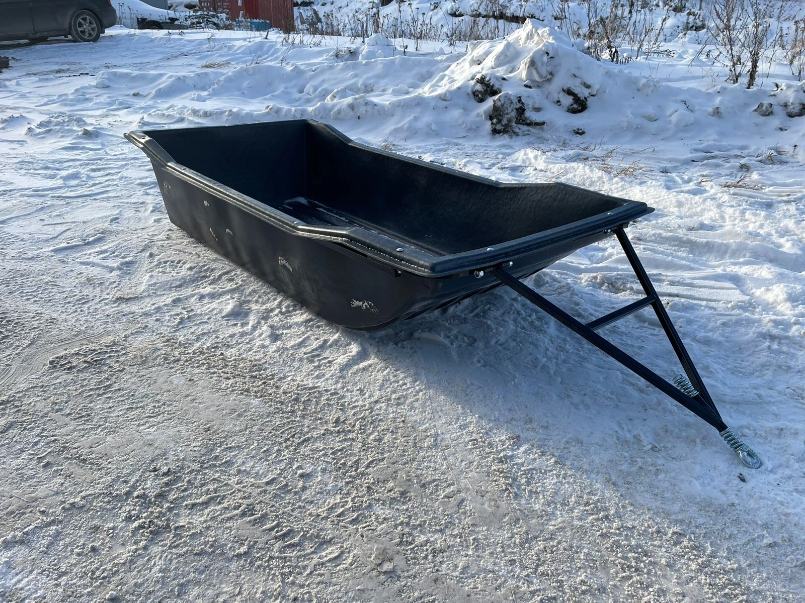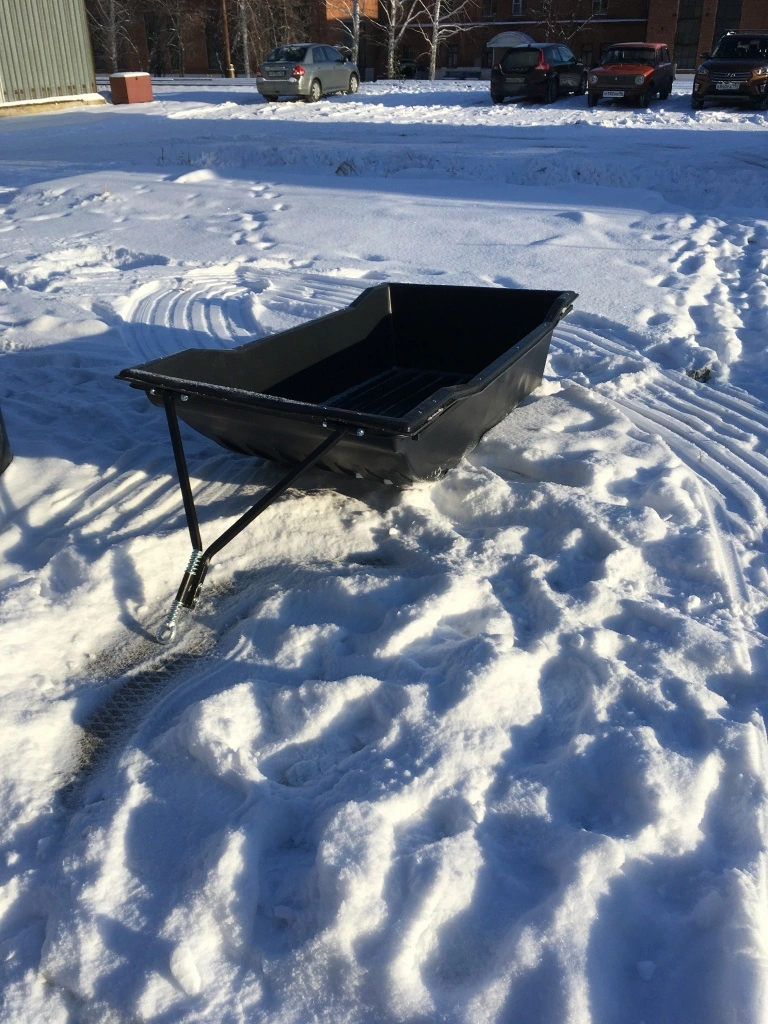 Сани компактные, легкие изделия быстро переносятся и крепятся к технике или упряжкам во время экспедиций, походов, рыбалки и охоты. Пластиковых саней для снегохода, мотобуксировщика или ручного перемещения грузов, изготавливаются методом ротоформования, цельнолитые.