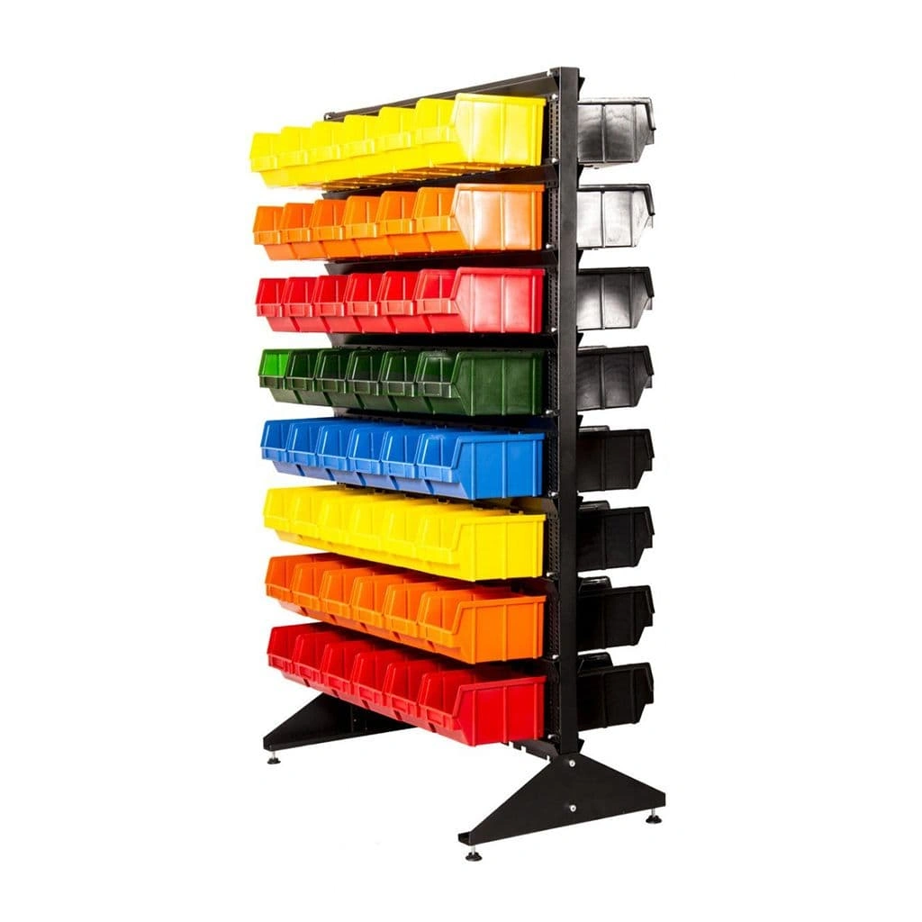 Стеллажи с ячейками упрощают работу с большим ассортиментом комплектующих и значительно сокращают время их поиска на складе или в магазине.