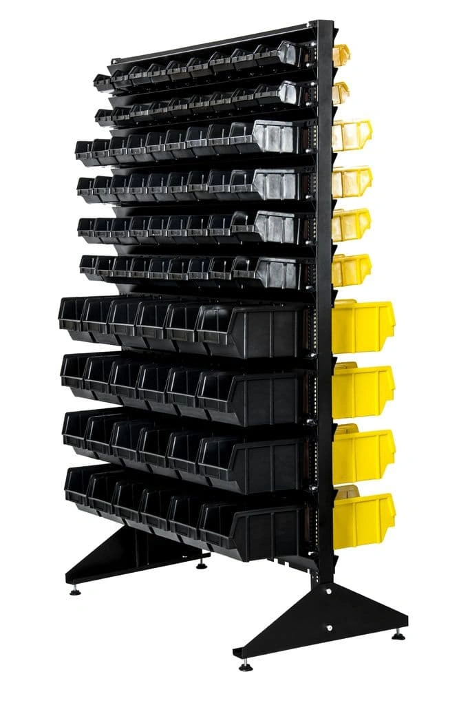 Стеллажи с ячейками упрощают работу с большим ассортиментом комплектующих и значительно сокращают время их поиска на складе или в магазине.
