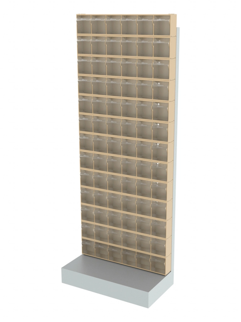 Стойка бежевая напольная Стелла-техник 403-00-13-00-B (610х325х1500) представляет собой удобную систему хранения на основе откидных коробов. Стойка подойдет для выставочных залов, магазинов, офисов, складов. Комплектация: Рама FOX (610х325х1500) V403 напольная односторонняя с основанием - 1 шт.; Короб откидной Стелла-техник F-600-6 , 600х96х112мм, 6 ячеек, красный, прозрачный – 13 шт.; Упаковка. Преимущества: Металлическое основание; Значительная устойчивость; Хорошая вместимость; Длительный срок службы.
