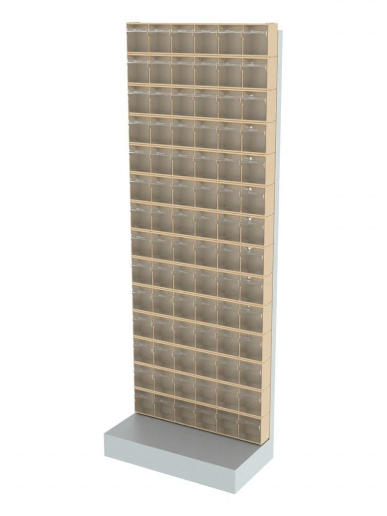 Стойка бежевая напольная Стелла-техник 404-00-14-00-B (610х325х1650) представляет собой удобную систему хранения, на основе откидных коробов. Стойка подойдет для выставочных залов, магазинов, офисов, складов. Комплектация: Рама FOX (610х325х1650) V404 напольная односторонняя с основанием - 1 шт.; Короб откидной Стелла-техник F-600-6 , 600х96х112мм, 6 ячеек, красный, прозрачный – 14 шт.; Упаковка. Преимущества: Металлическое основание; Значительная устойчивость; Хорошая вместимость; Длительный срок службы.