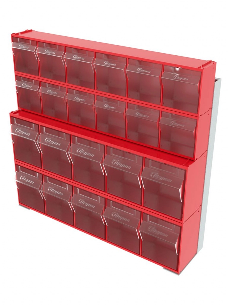 Стойка настенная/настольная Стелла-техник 401-00-02-02 (610х150х500) представляет собой удобную систему хранения, которая подойдет для выставочных залов, магазинов, офисов, складов. Основание можно установить на стол или закрепить на стену, привернув его анкерными болтами или саморезами (в комплект не входят). В комплект стойки 401-00-02-02 входит: Рама FOX (610х150х500) V401 - 1 шт.; Короб откидной Стелла-техник F-600-6 , 600х96х112мм, 6 ячеек, красный, прозрачный – 2 шт.; Короб откидной Стелла-техник F-600-5 , 600х140х168мм, 5 ячеек, красный, прозрачный – 2 шт.; Упаковка. Преимущества стойки: Металлическое основание; Значительная устойчивость; Хорошая вместимость; Длительный срок службы.