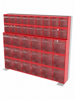 Стойка настенная/настольная Стелла-техник 401-02-03-00 (610х150х500) представляет собой удобную систему хранения, которая подойдет для выставочных залов, магазинов, офисов, складов. Основание можно установить на стол или закрепить на стену, привернув его анкерными болтами или саморезами (в комплект не входят). В комплект стойки 401-02-03-00 входит: Рама FOX (610х150х500) V401 - 1 шт.; Короб откидной Стелла-техник F-600-9 , 600х68х78мм, 9 ячеек, красный, прозрачный - 2 шт.; Короб откидной Стелла-техник F-600-6 , 600х96х112мм, 6 ячеек, красный, прозрачный - 3 шт.; Упаковка. Преимущества стойки: Металлическое основание; Значительная устойчивость; Хорошая вместимость; Длительный срок службы.
