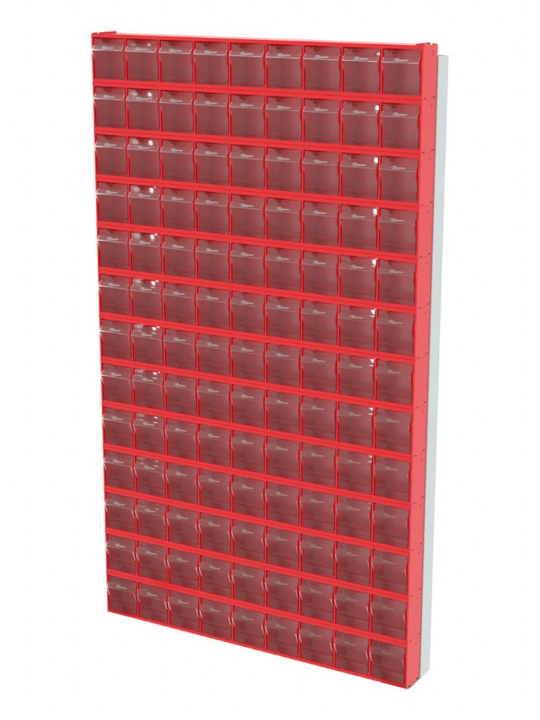 Стойка настенная Стелла-техник 402-13-00-00 (610х40х1000) представляет собой удобную систему хранения на основе откидных коробов, которая подойдет для использования в выставочных залах, магазинах, складах. Стойка крепится на стену при помощи саморезов или анкерных болтов (крепеж не входит в комплект и подбирается под уровень загруженности стойки). Комплектация: Рама FOX (610х40х1000) V402 - 1 шт.; Короб откидной Стелла-техник F-600-9 , 600х68х78мм, 9 ячеек, красный, прозрачный -13 шт.; Упаковка. Преимущества: Металлическое основание; Значительная устойчивость; Хорошая вместимость; Длительный срок службы.