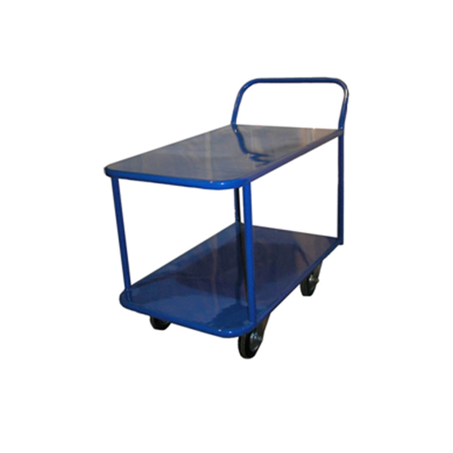 Платформенная двухъярусная 4-х колесная тележка КП-2 (2-х ярусная) используется для перевозки малогабаритных грузов. Платформы имеют металлический каркас накрытый металлическим листом толщиной 1,2мм. Размер платформы 700х1200мм. Расстояние между ярусами 480мм. Количество ярусов - два.Габаритная высота 1050мм.Покрытие металлических деталей тележки - полимерное. Цвет - синий.Тележка КП-2 (2-х ярусная) оснащена двумя поворотными и двумя неповоротными колесами, изготовленными из высококачественной литой резины, диаметром 160мм, комплектом крепежа. Две платформы позволяют удобно расположить перевозимые предметы.Тележка широко используется на складах, в торговых павильонах, а также в гостиничном и ресторанном бизнесе. Грузоподьемность до 400кг.