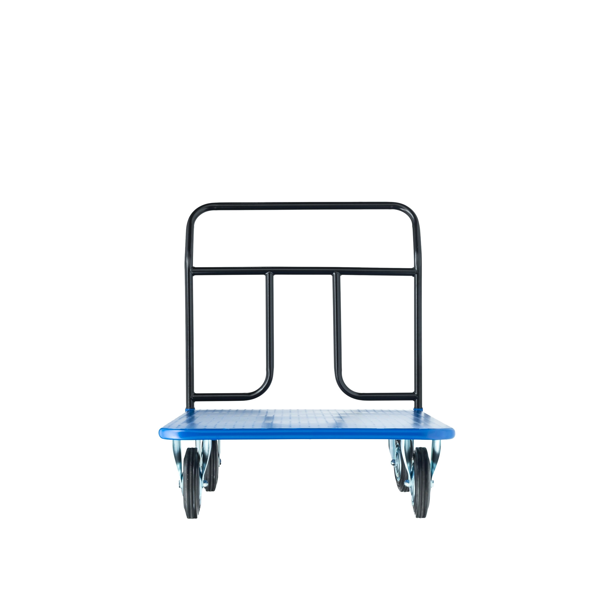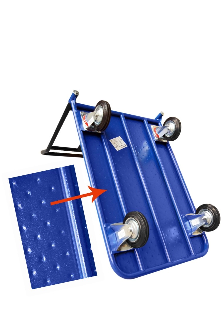 Платформенная 4-х колесная тележка КП-400-150-И используется для перемещения различных грузов в складских помещениях. Ручка крепится к платформе болтами, для компактного хранения можно снять, высота ручки 750мм. Платформа имеет уникальную рельефную, полимерную, противоскользящую поверхность, размером 700х1000мм. Цвет - синий, шагрень. Тележка комплектуется: метизами для крепления, двумя поворотными и двумя неповоротными промышленными колесами, диаметром 150мм., из черной стандартной резины, от всемирно известного, ведущего итальянского производителя Tellure Rota. Грузоподъемность до 450кг.