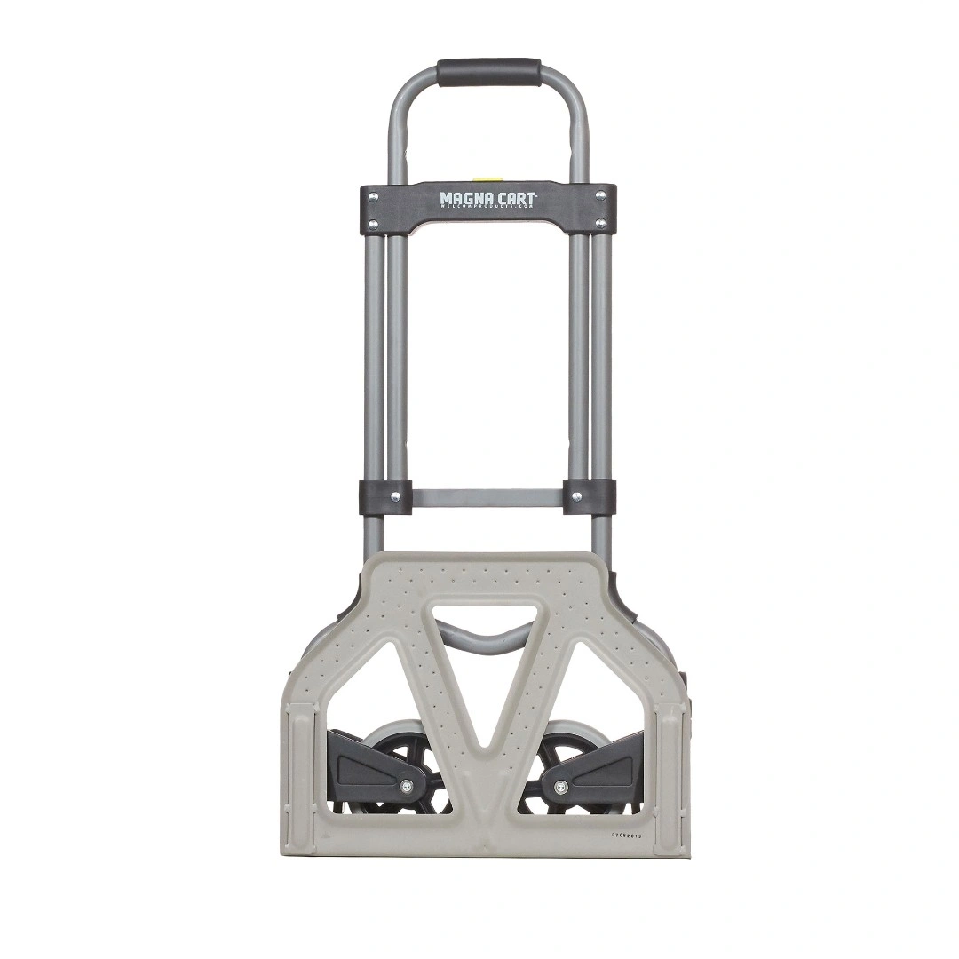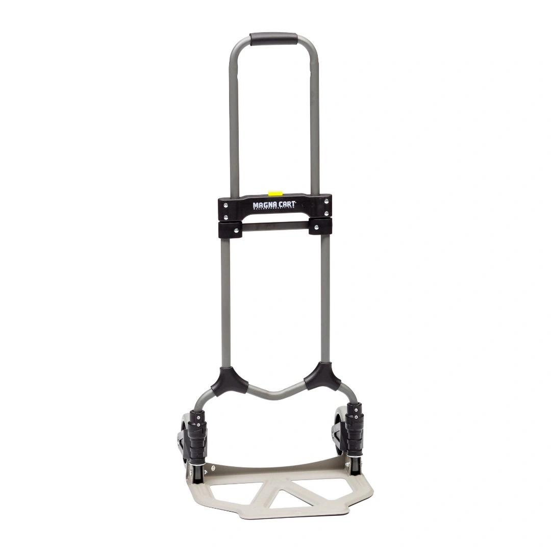 Складная тележка MAGNA CART MCI из стали c максимальной грузоподъемностью 68кг. Тележка быстро и удобно раскладывается и собирается за счет сложения телескопической ручки и колес вдоль корпуса. Материал алюминий. Размер площадки 282х378мм, максимальная высота ручки 980мм., диаметр колес 121мм. Складные тележки идеально подходят для транспортировки выставочного оборудования, обслуживания маленьких складов и перевозки грузов в домашних условиях или во время путешествий. За счет узкого профиля и компактных размеров технику легко разместить на полке в самолете или багажнике машины.