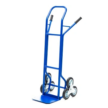 Грузовая специализированная лестничная тележка КС-150 имеет уникальную колесную базу, что позволяет перемещать по лестнице и на ровных плоскостях, груз весом до 150кг. Небольшие габариты и малый вес устройства облегчают его транспортировку. Окрашенный металлический корпус не восприимчив к коррозии и устойчив к нагрузкам. Вес тележки 18.8кг., высота ручки 1350мм., размер платформы 350х240мм., габариты 1350х550мм. Рукоятки имеют удобную для захвата форму и покрыты резиной, предотвращающей соскальзывание рук. Диаметр каждого из 6 колес-150мм. Большая опорная платформа служит для предотвращения падения груза с тележки.